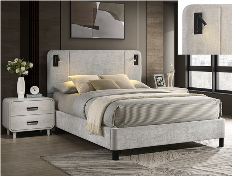 Indulge in the perfect fusion of luxury and convenience with this elegantly crafted bed frame, designed to revolutionize your bedroom experience. Featuring a sophisticated headboard with integrated lighting, it creates a serene ambience ideal for both relaxation and reading. Stay connected effortlessly with built-in USB charging ports, ensuring your devices are always within reach and fully powered. The sleek, modern aesthetic complements any décor, while high-quality materials promise durability and comfort, making this bed frame not just a piece of furniture, but a lifestyle upgrade. Elevate your sleep sanctuary today with this exquisite addition that’s as functional as it is stunning. 5272LG FREYA BED FRAME
